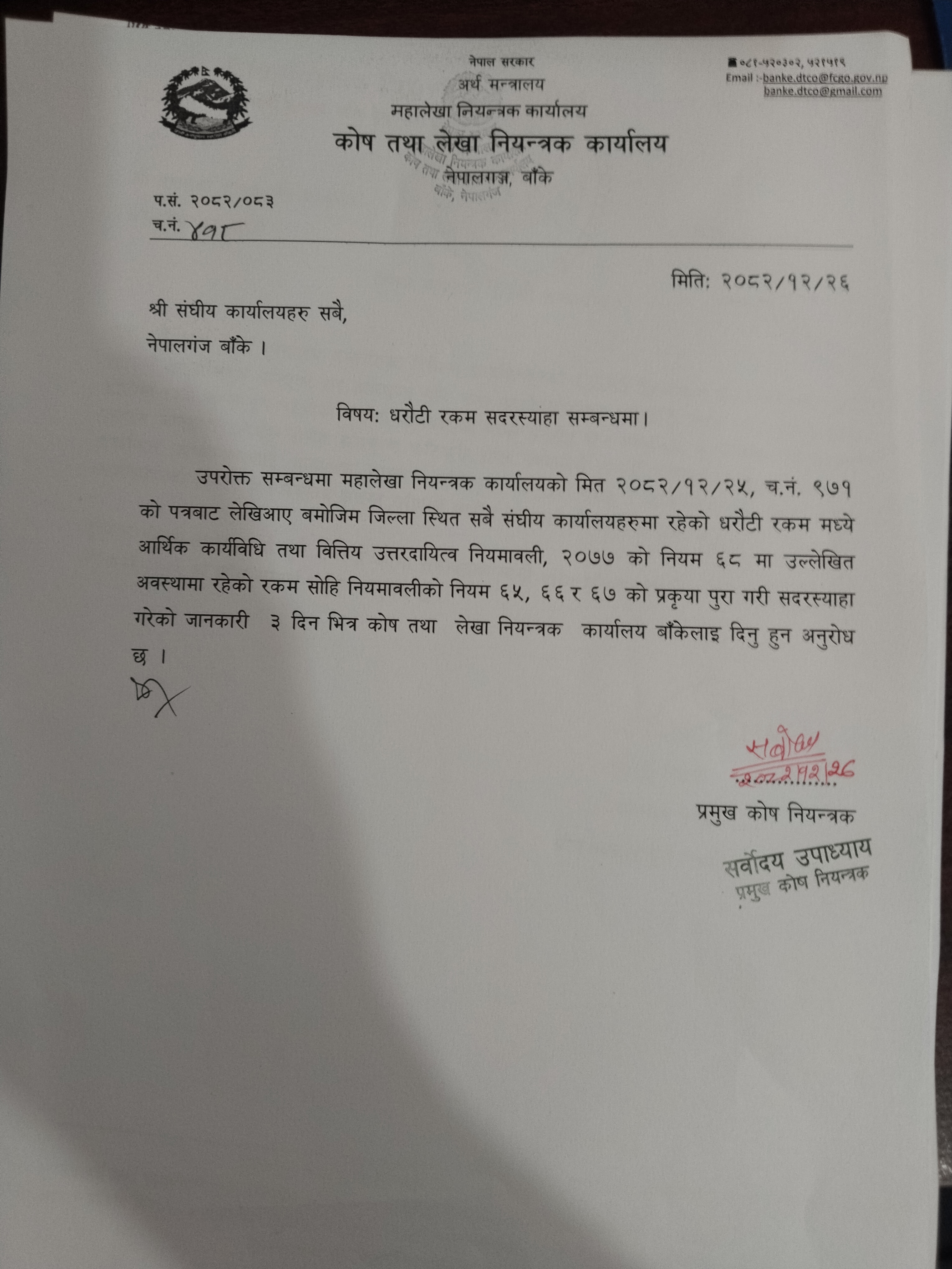 धरौटी रकम सदरस्याहा सम्बन्धमा ।